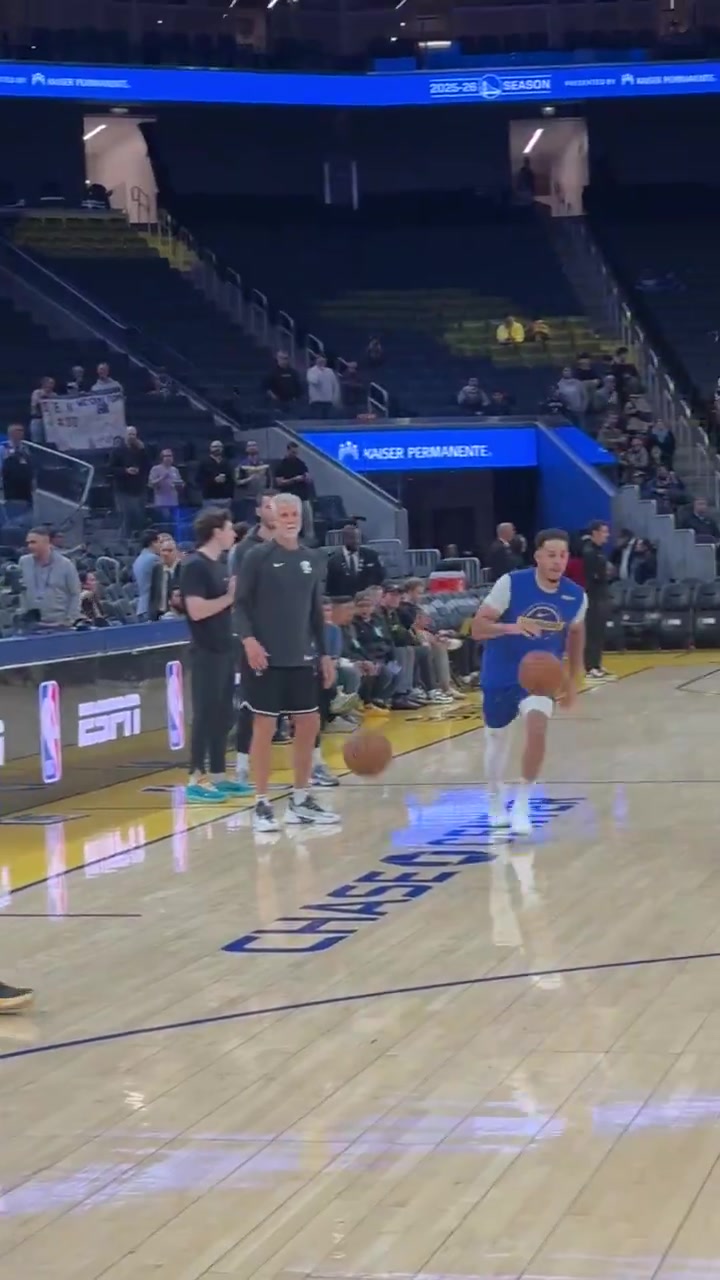 库里赛前热身秀了一记单臂暴扣膝盖看上去是完全没事了