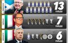 90年至今五大联赛主帅夺冠榜:弗格森13次第一,瓜帅12次第二