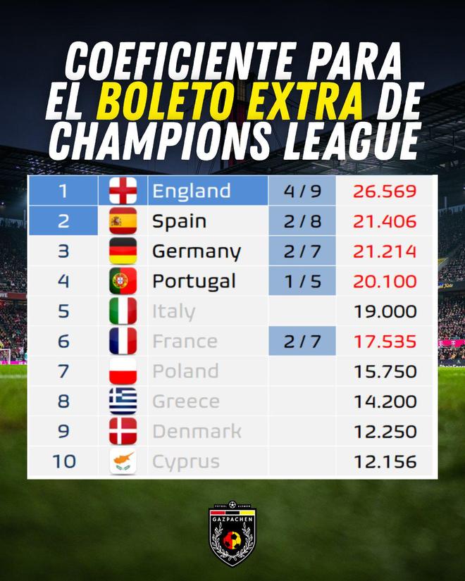 欧冠第五名额怎么算?德甲西甲正在算分